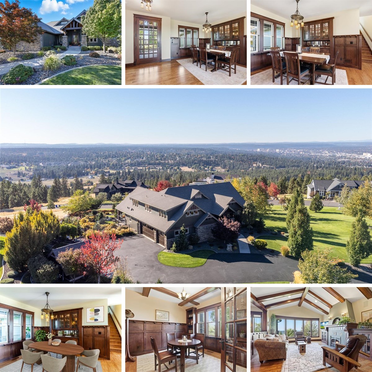 This craftsman masterpiece sits at the highest point of gated Broadmoor Estates, surrounded by 135+ acres of private community land and miles of trails that connect directly into the 500+ acres of the Dishman Hills Conservation Area. Inside, meticulous craftsmanship and design shine throughout. The kitchen is thoughtfully designed, featuring a built-in refrigerator and dishwasher, spacious island, wet bar, coffee bar, and eating nook. The primary suite offers a private deck, soaking tub, walk-in shower, and spacious closet. Upstairs, you’ll find a versatile bonus hobby room with a closet, suitable for use as a fifth bedroom suite. The lower level is designed for hosting, with three bedrooms, one bathroom, a sauna, beautiful stone fireplace, and an exquisite wet bar complete with a wine fridge and ice maker. Step right out the back door to a park-like setting and enjoy the presence of a pond, waterfall, trees, garden, grapevines, and local wildlife. See attached video and 3D walkthrough!